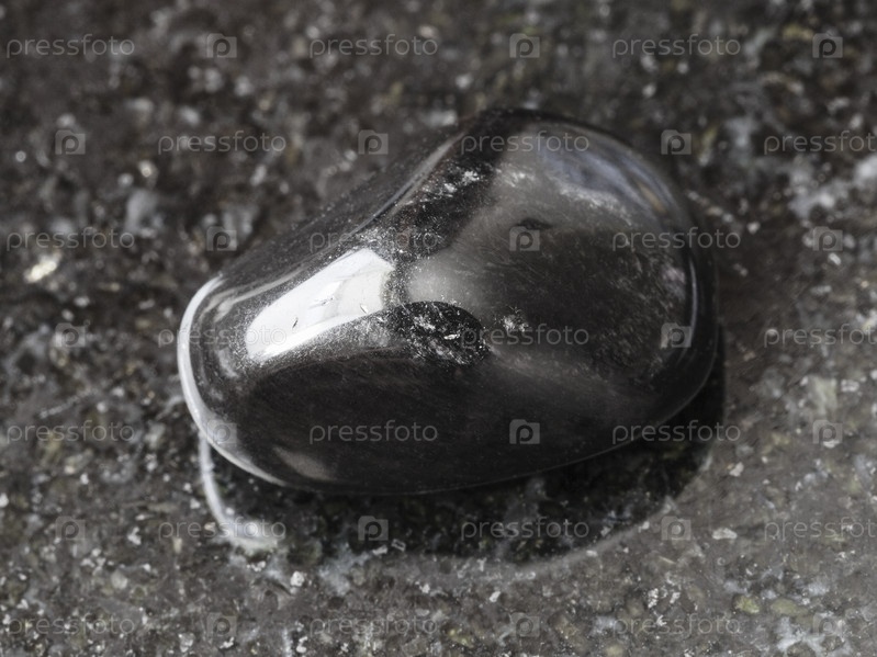 Полированный черный обсидиан камень на темном