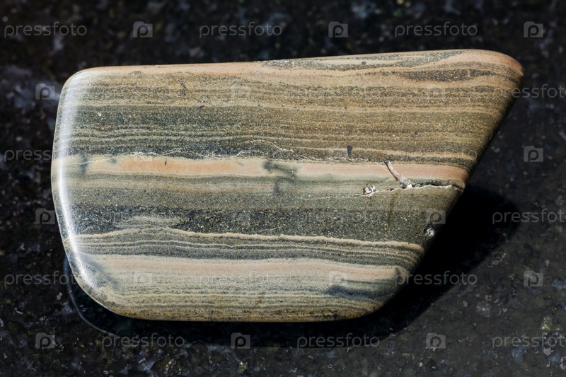 Полированный мергель сланцевый камень на темном фоне