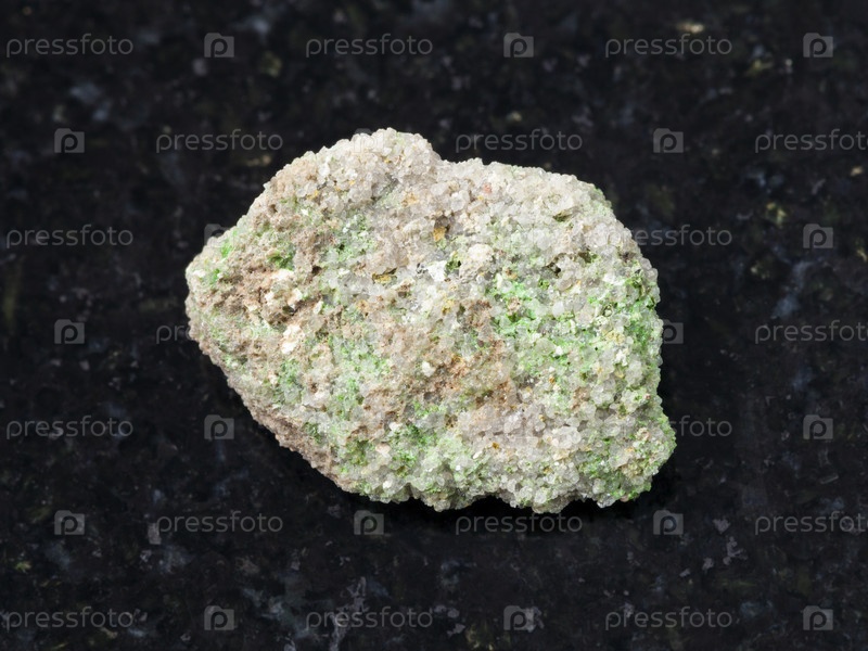Зеленые кристаллы пинтадоита в грубом камне на темном