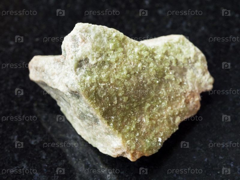 Зеленые кристаллы везувиана на необработанном камне на темном
