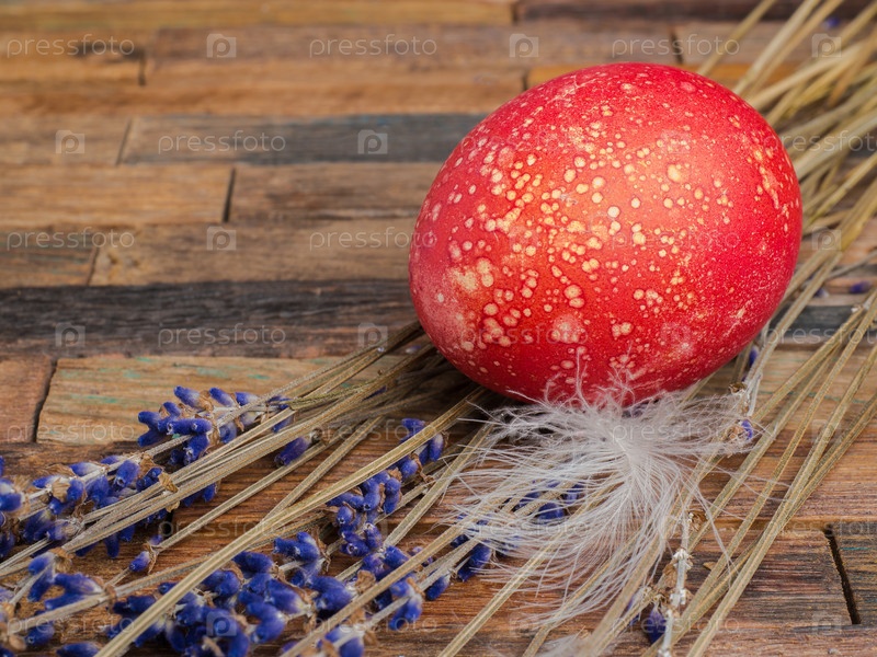 Красное пасхальное яйцо с лавандой и пером