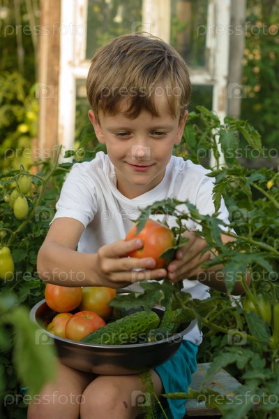 Дети собирают овощи