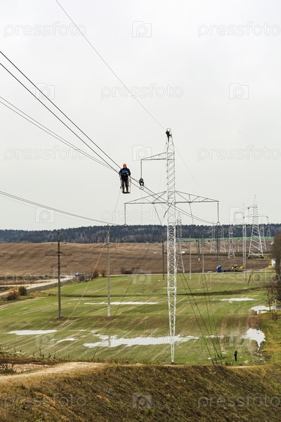 Команда работников линий высокого напряжения