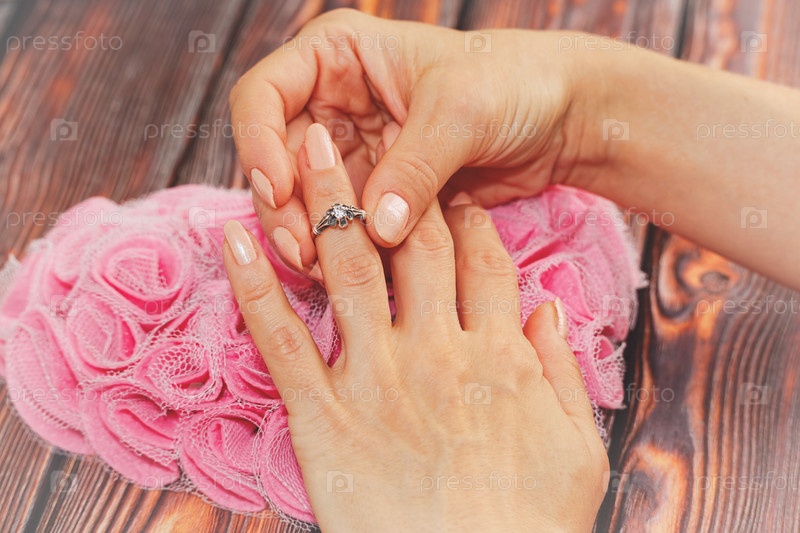 Женщина надевает серебряное кольцо