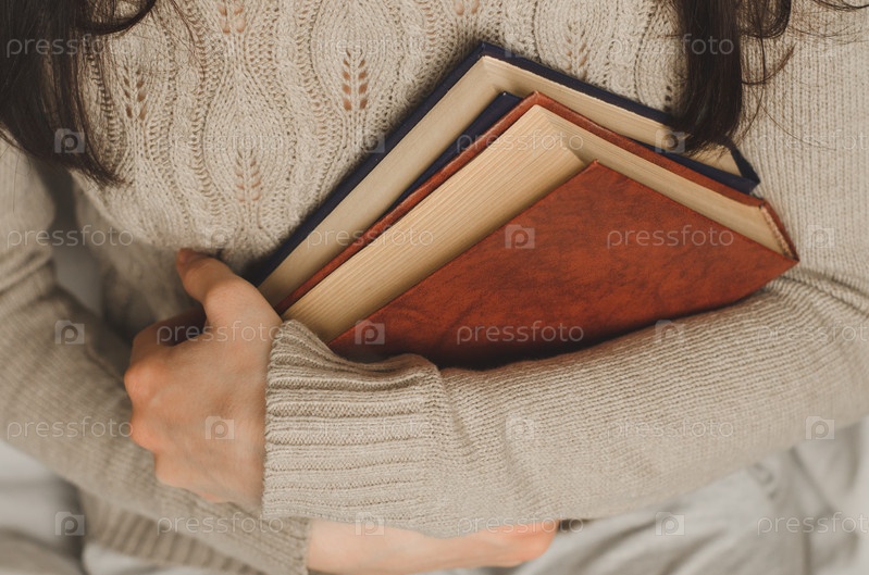 Молодая девушка держит две книги в руках