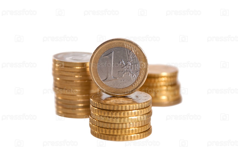 Несколько стопок монет на белом фоне