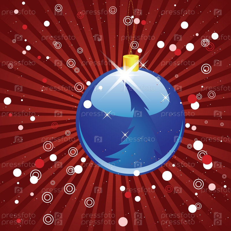Синий рождественский шар на красном фоне