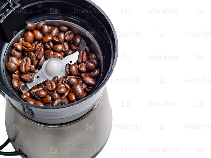 Электрическая кофемолка с жареным зерном кофе