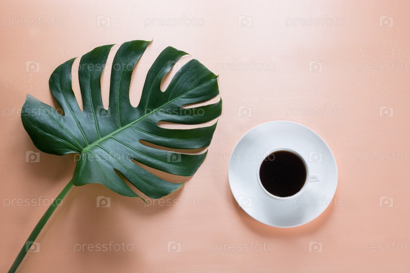 Чашка кофе и зеленый лист