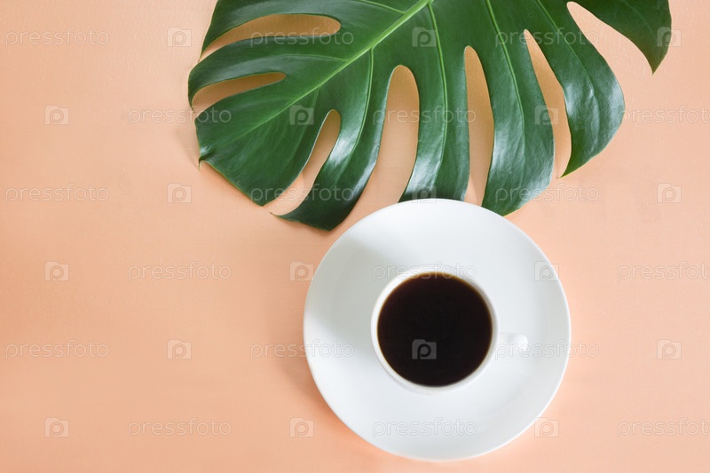 Чашка кофе и зеленый лист
