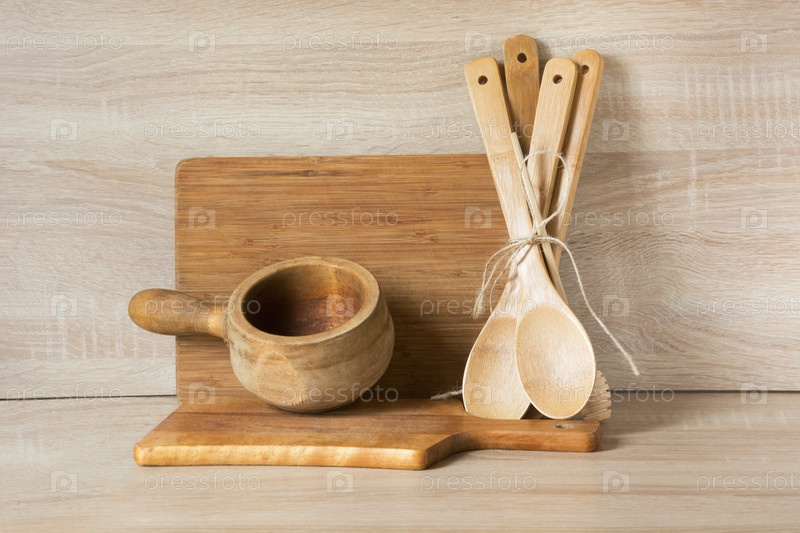 Деревянные деревенские столовые приборы и посуда
