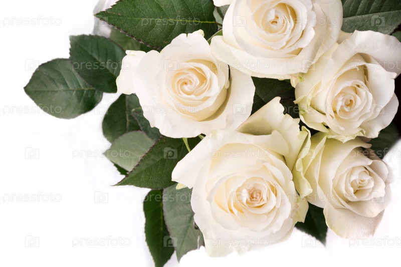 Нежные белые розы на белом