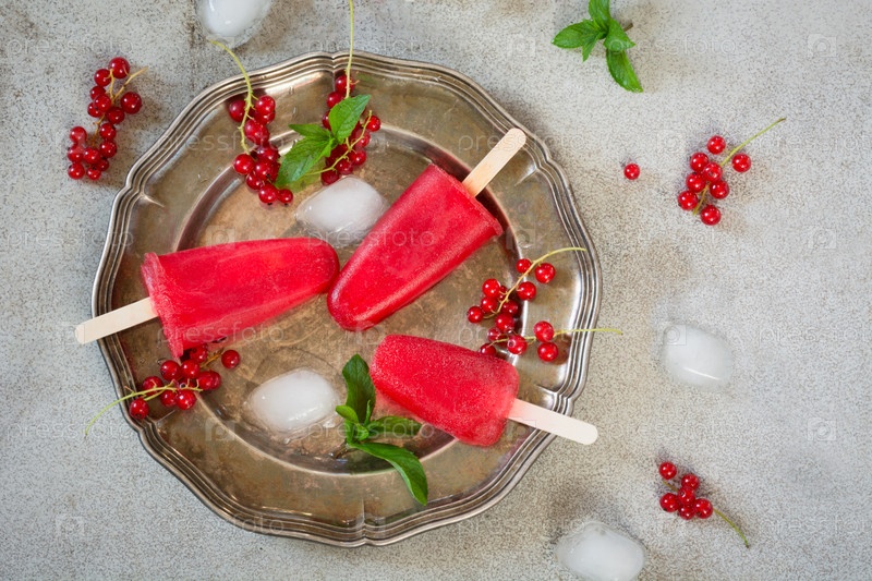 Домашнее мороженое, эскимо из красной смородины