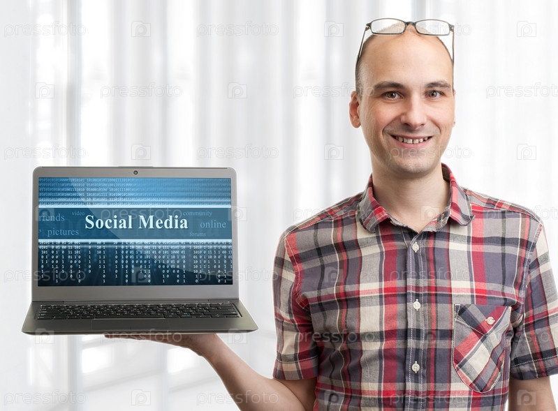 Человек с ноутбуком. Средства коммуникации