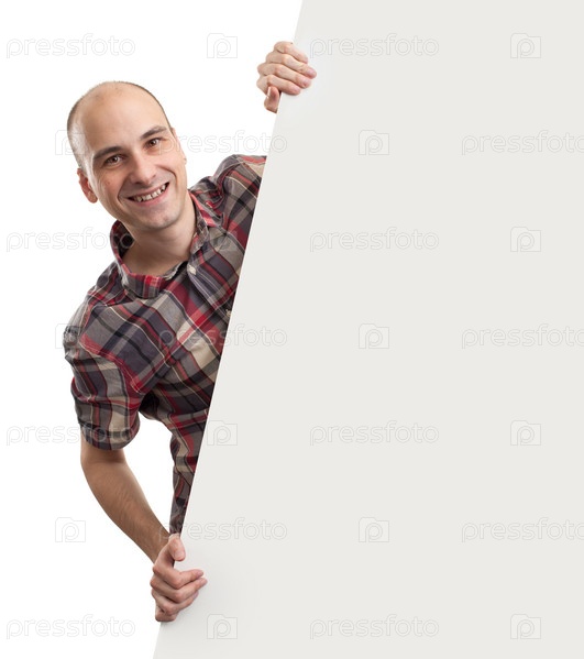 Улыбающийся мужчина с пустым баннером