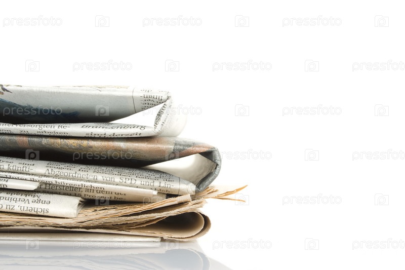 Стопка газет на белом фоне