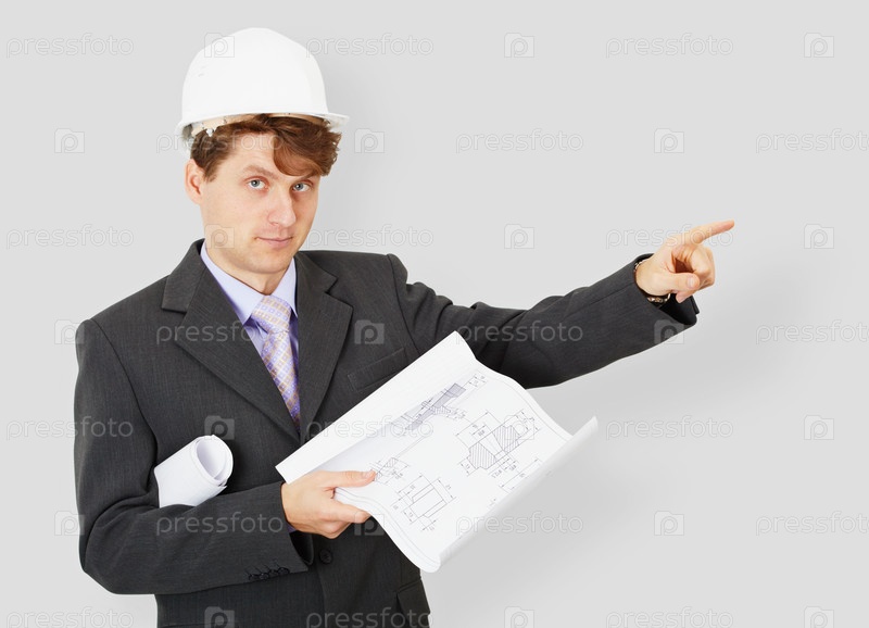 Молодой инженер с чертежом в руке