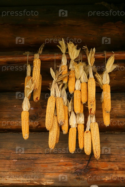 Сухие початки кукурузы, традиционное украинское украшение дома