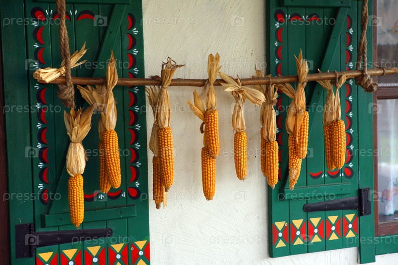 Сухие початки кукурузы, традиционное украинское украшение дома