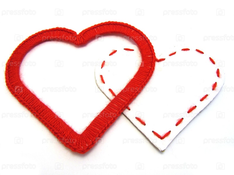 Два сердца, красное и белое на белом фоне