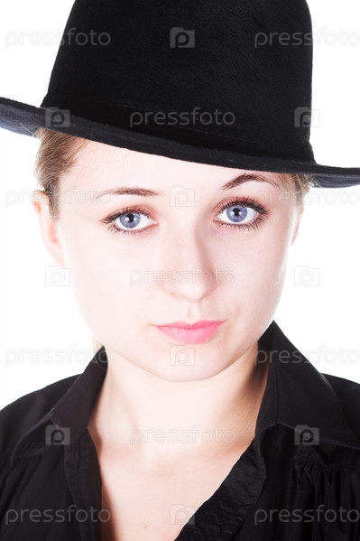 Портрет улыбающейся красивой девушки в черной шляпе