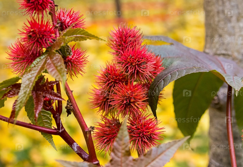 шипы красного цветка масло касторового растения (Ricinus communis)