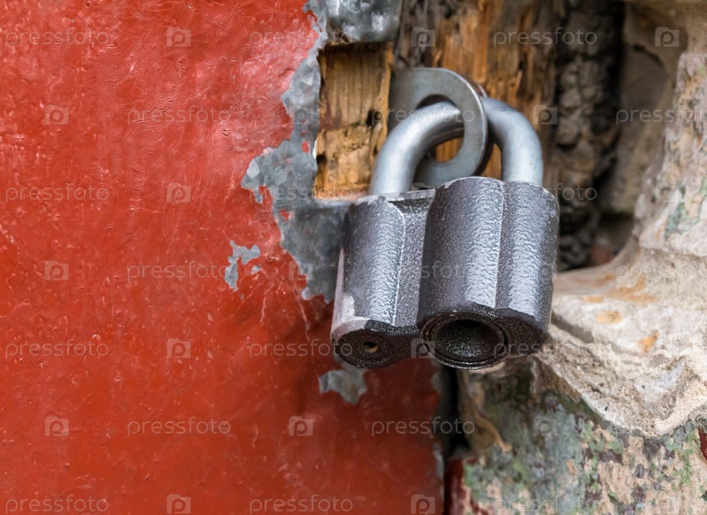 Деревянная дверь с большим висячим замком