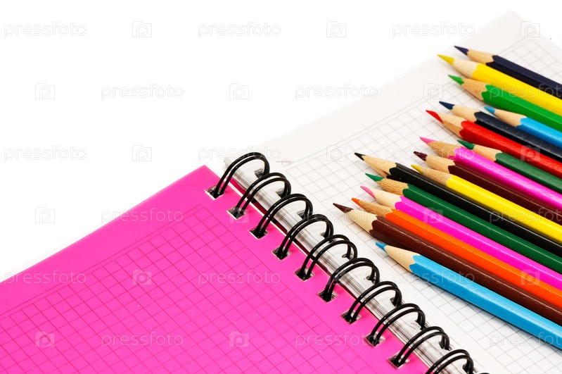 Цветные карандаши и записная книжка