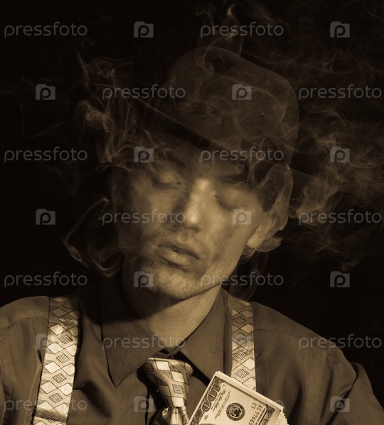 Человека считает деньги и курит сигару