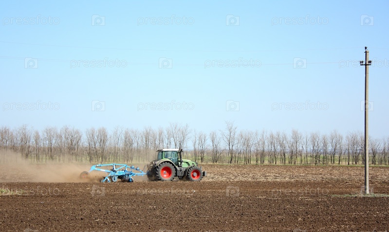 Трактор обрабатывает землю Время посева