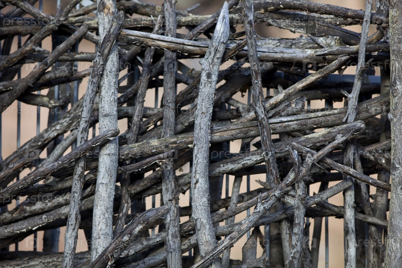Металлический забор и сухие ветки