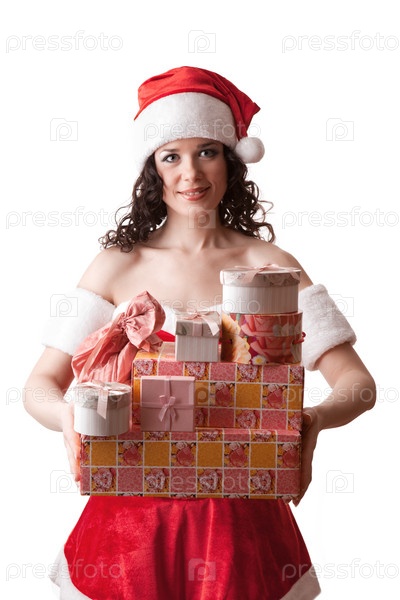 Девушка-Санта с рождественскими подарками