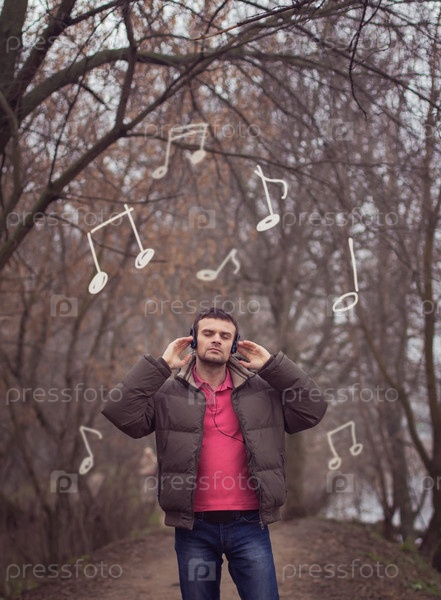 Человек в наушниках на природе
