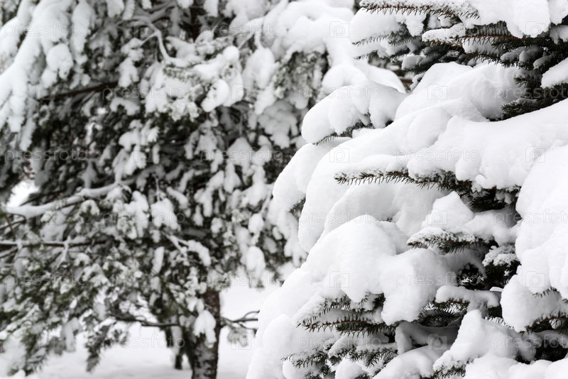 Ели, покрытые снегом в лесу