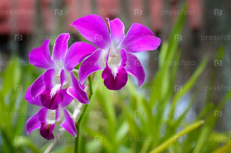 Красивые фиолетовые орхидеи в саду