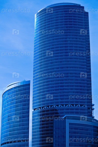 Вершина блестящих лазурных современных небоскребов в бизнес-центре