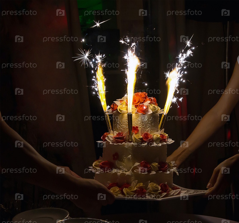 Праздничный свадебный торт с фейерверками