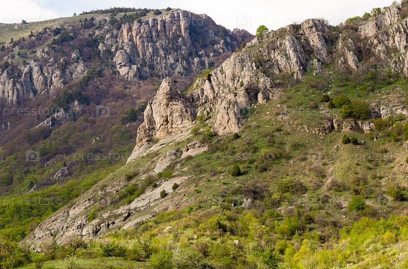 Склон холма, покрытая зеленью с каменными пиками