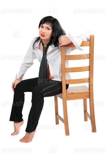 Усталая брюнетка на стуле