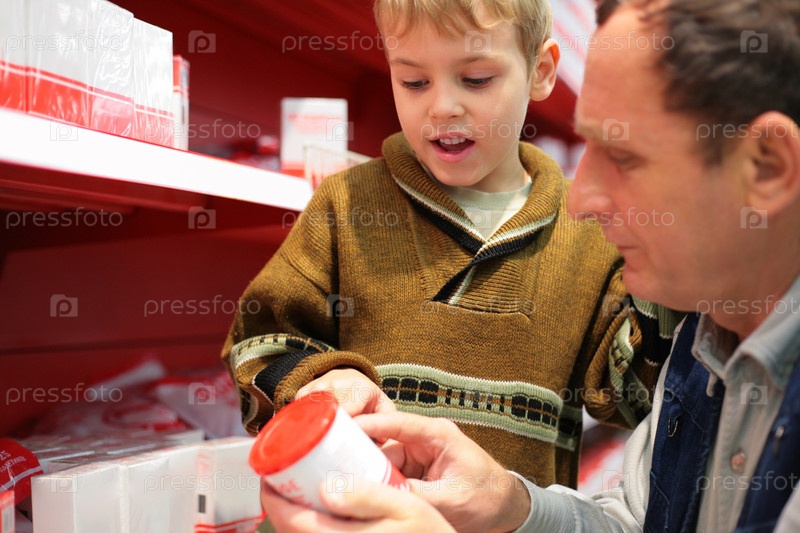 Дедушка с внуком в супермаркете