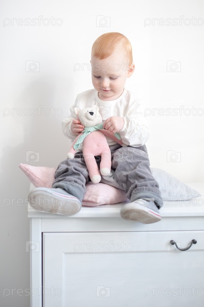 Рыжая девочка сидит на комоде