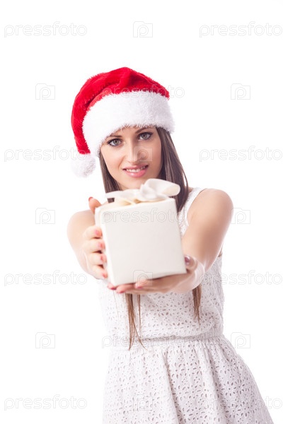 Женщина дарит подарок, изолированная