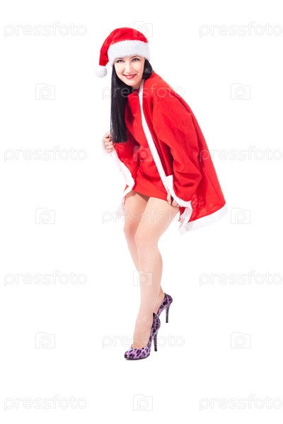 Сексуальная девушка в рождественском костюме, изолированная