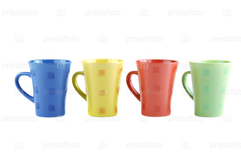 Цветные чашки на белом фоне