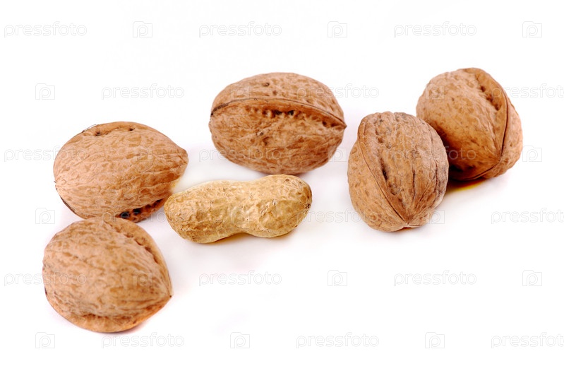 Арахис в окружении грецких орехов