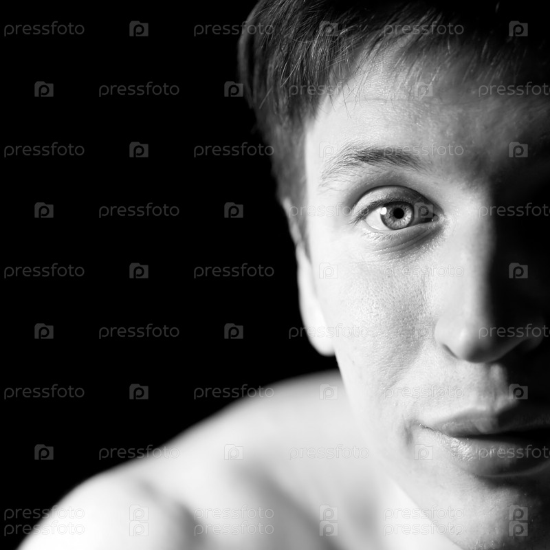 Крупным планом лицо мужчины на черном фоне