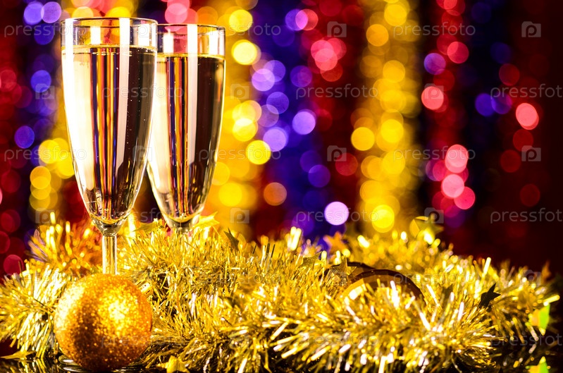 Шампанское и елочные игрушки