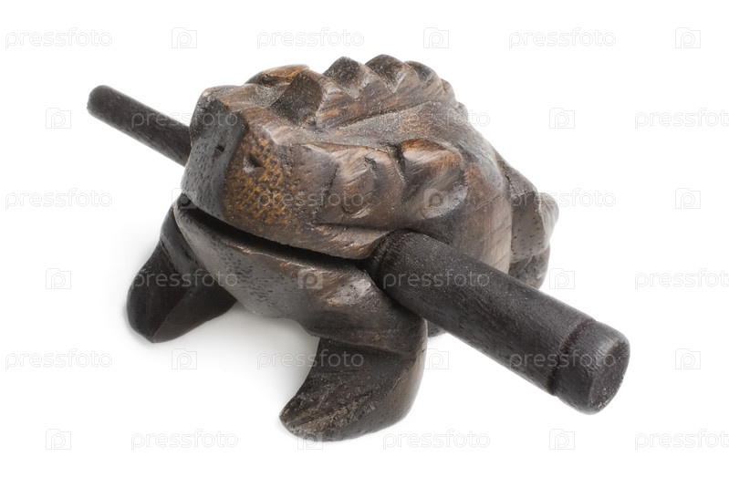 Деревянная жаба из Таиланда на белом фоне