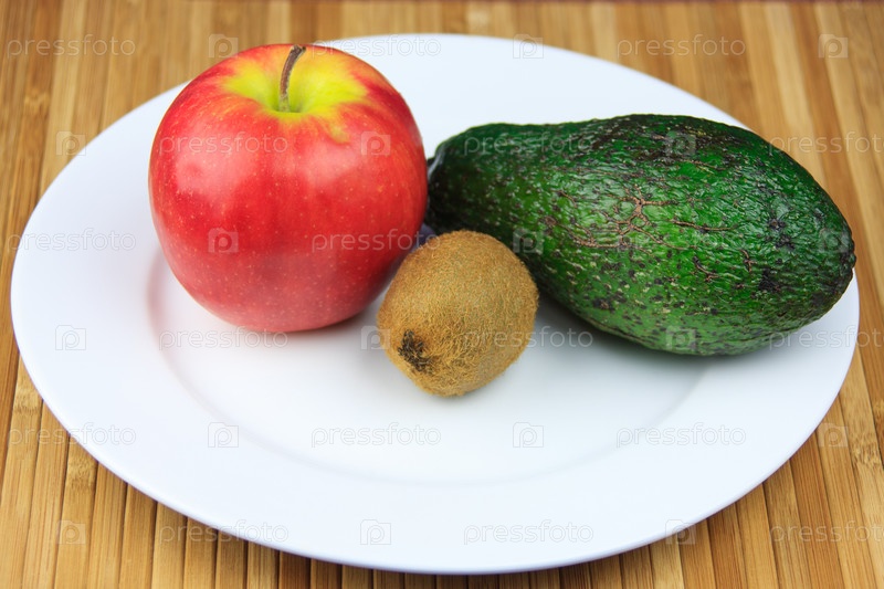 Яблоко, киви и авокадо на тарелке