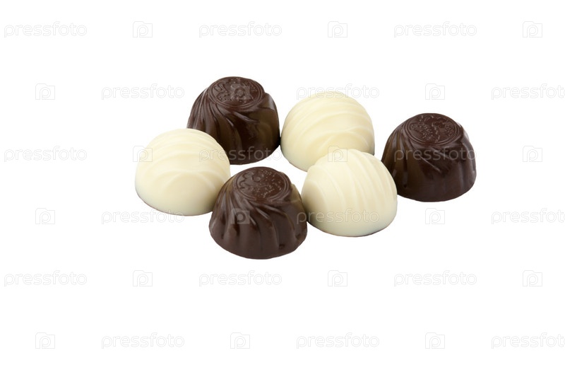 Черный и белый шоколад на белом фоне